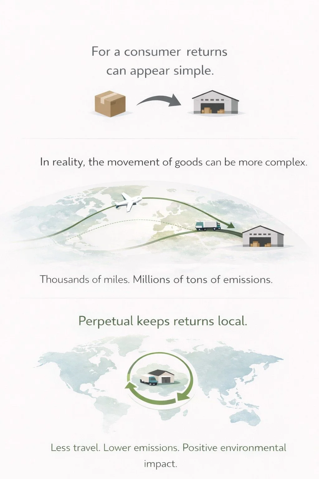 Returns often travel long distances back to centralised warehouses, increasing emissions through air, sea, and road transport. Even when items are resold, additional handling, repackaging, and redistribution add further environmental cost. Unsellable goods are often sent to landfill or incineration, contributing to avoidable waste.
